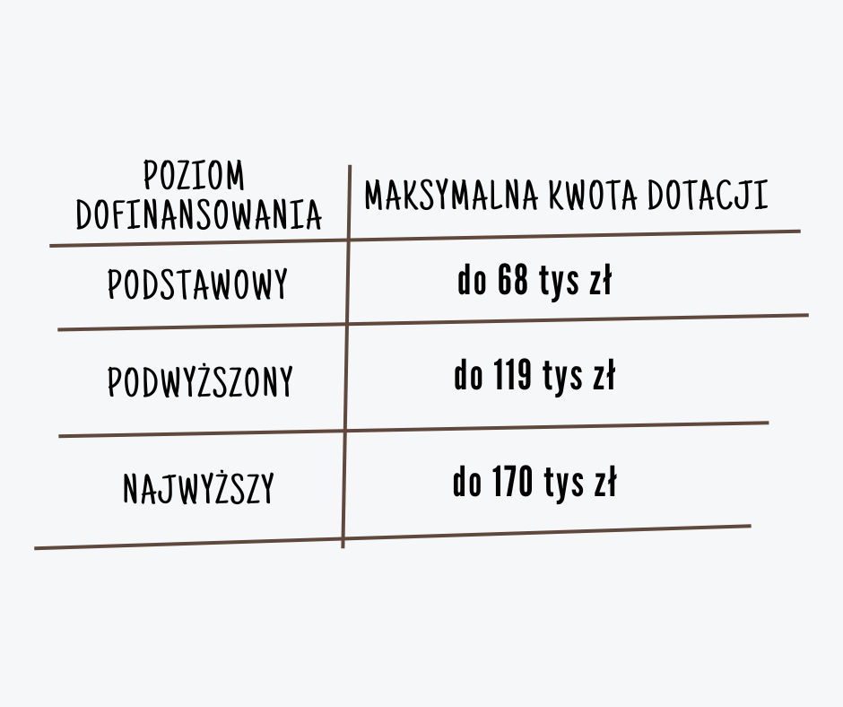 W poniższej tabeli pokazujemy jakie możesz uzyskać maksymalne kwoty dofinansowania.